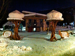 The youngest and I would go to the playground to play while the kids were at ski school... (this picture was taken at night when we walked by after dinner. We would go here right before lunch usually)